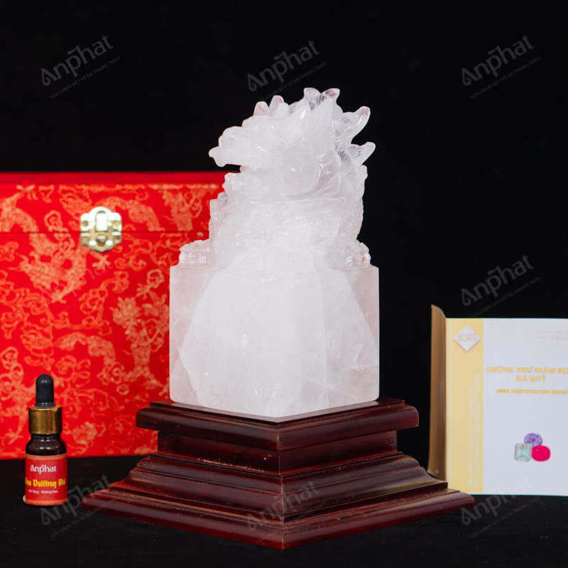 Ấn Rồng Thạch Anh Trắng 2A 18cm 015-0872A-18