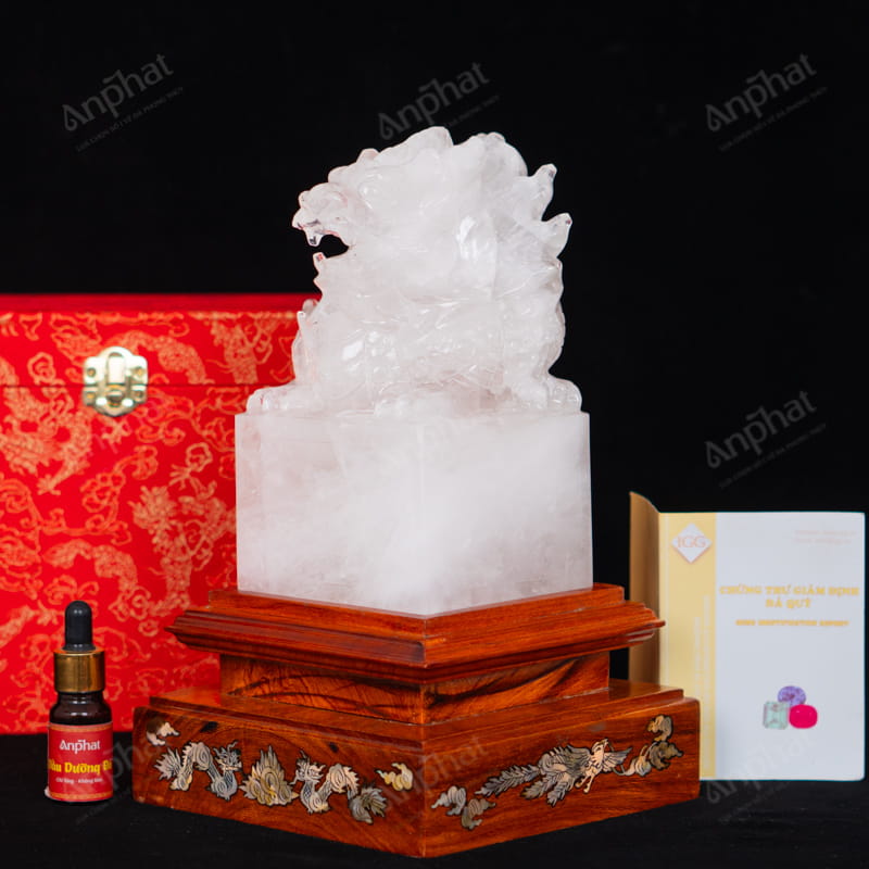 - Trọn bộ sản phẩm bao gồm: ấn rồng + đế gỗ + hộp đựng cao cấp + túi giấy sang trọng + dầu dưỡng đá + giấy kiểm định chất lượng đá + thiệp tặng quà