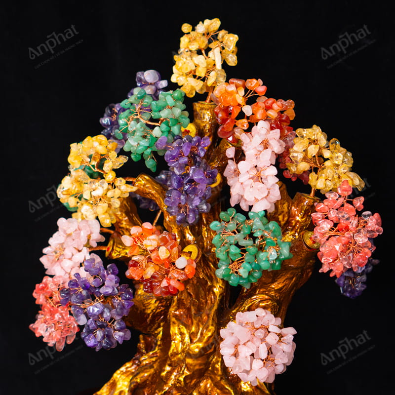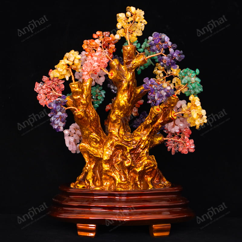 Cây Tài Lộc Thạch Anh Đa Sắc Đế Rời 52cm 018-074D07-52