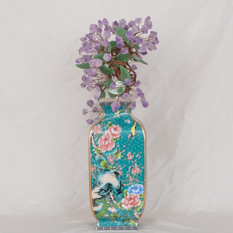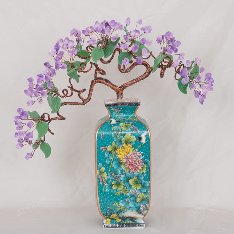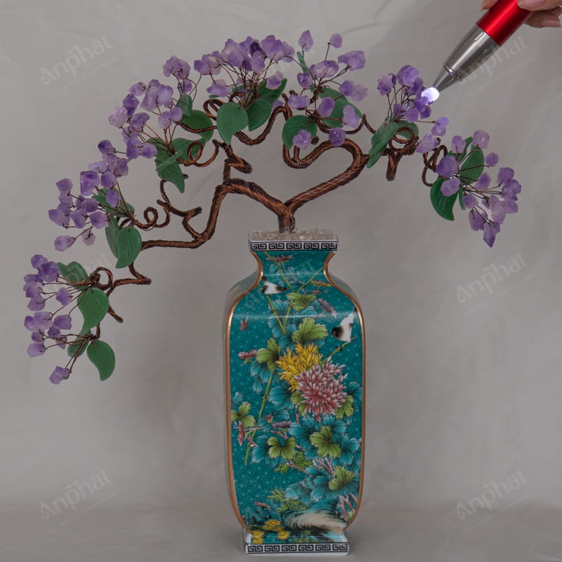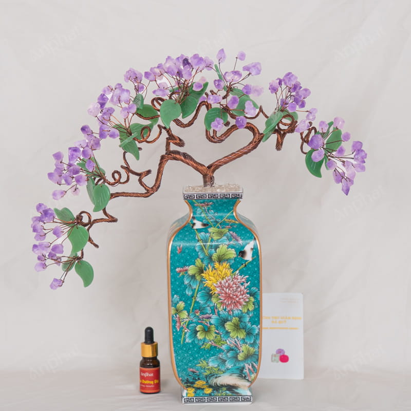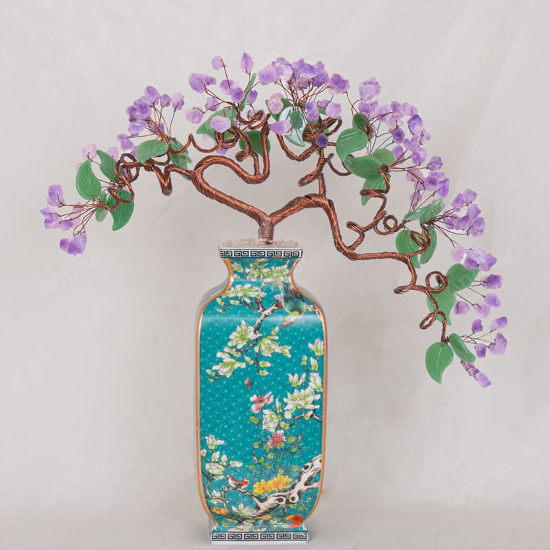 Cây Tài Lộc Tinh Thể Thạch Anh Tím Đế Sứ 46cm 018-096D03-46