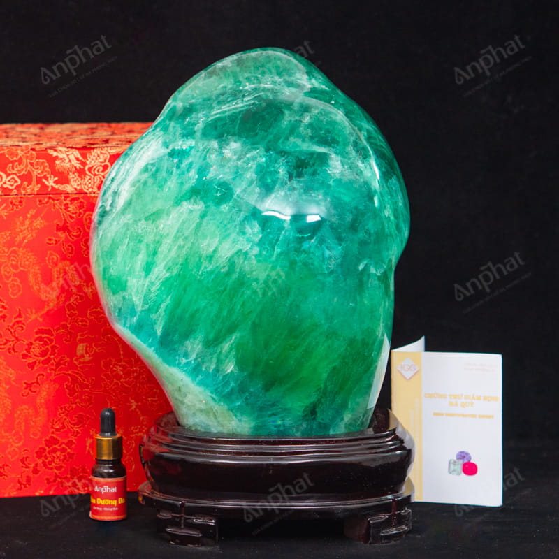 - Trọn bộ sản phẩm bao gồm: đá cảnh + đế gỗ + hộp nhung cao cấp + dầu dưỡng đá + giấy kiểm định chất lượng đá + thiệp tặng quà