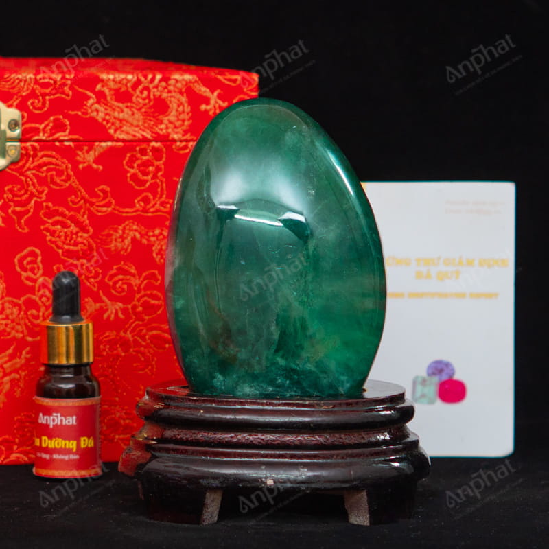 - Trọn bộ sản phẩm bao gồm: đá cảnh + đế gỗ + hộp nhung cao cấp + túi giấy sang trọng + dầu dưỡng đá + giấy kiểm định chất lượng đá + thiệp tặng quà
