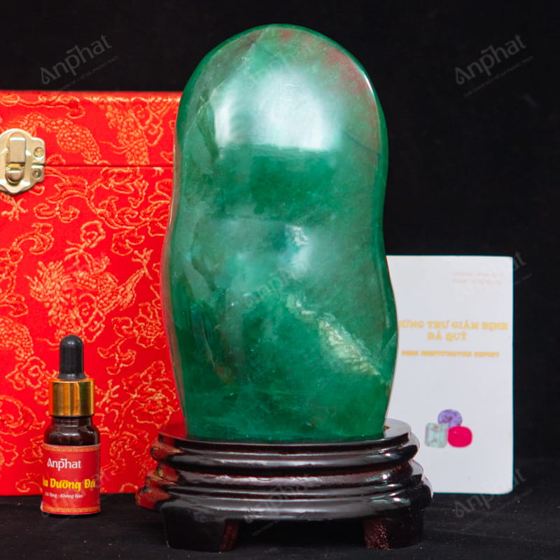 - Trọn bộ sản phẩm bao gồm: đá cảnh + đế gỗ + hộp nhung cao cấp + túi giấy sang trọng + dầu dưỡng đá + giấy kiểm định chất lượng đá + thiệp tặng quà