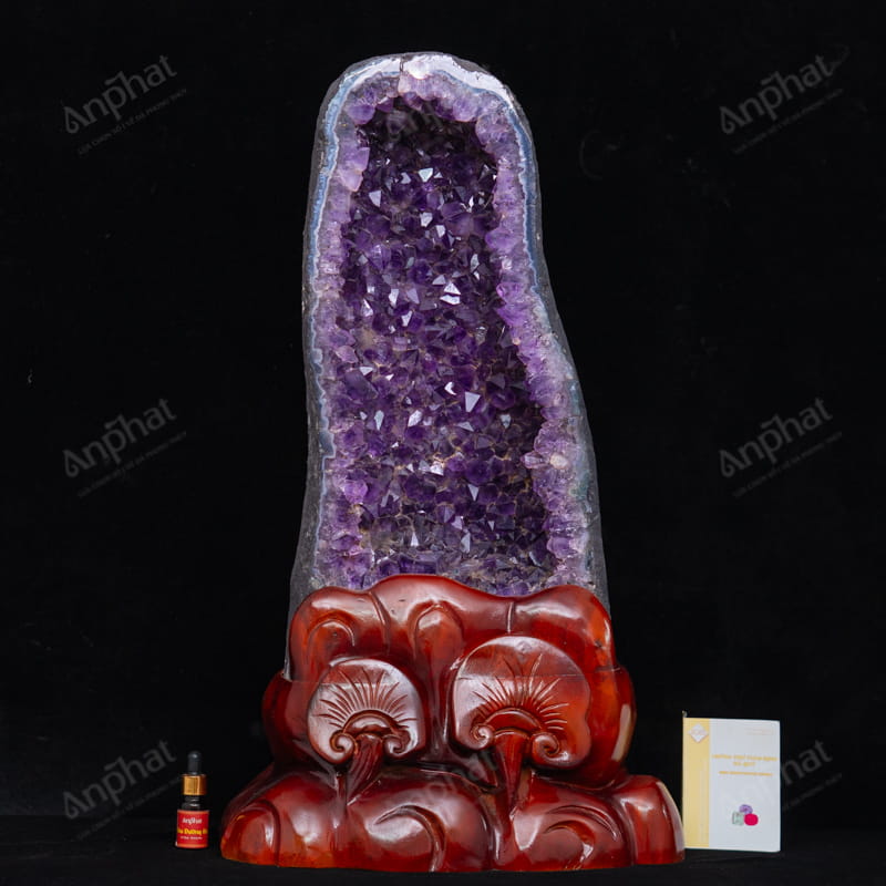- Trọn bộ sản phẩm bao gồm: hốc thạch anh + đế gỗ + dầu dưỡng đá + thiệp + giấy kiểm định chất lượng đá