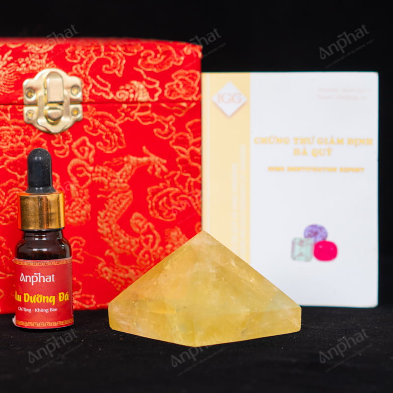 - Trọn bộ sản phẩm bao gồm: Kim tự tháp + hộp nhung cao cấp + túi giấy trang trọng + dầu dưỡng đá + thiệp + giấy kiểm định chất lượng đá