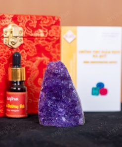 - Trọn bộ sản phẩm bao gồm: mảnh thạch anh + hộp nhung cao cấp + túi giấy sang trọng + dầu dưỡng đá + thiệp + giấy kiểm định chất lượng đá + trì chú tại chùa