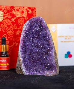 - Trọn bộ sản phẩm bao gồm: mảnh thạch anh + hộp nhung cao cấp + túi giấy sang trọng + dầu dưỡng đá + thiệp + giấy kiểm định chất lượng đá + trì chú tại chùa