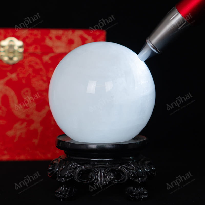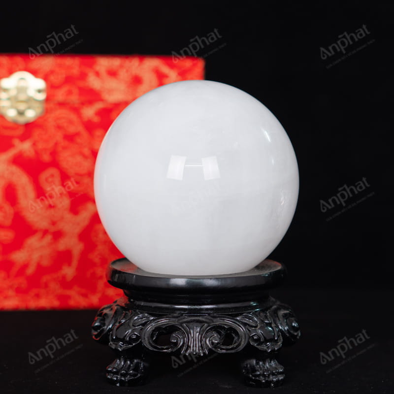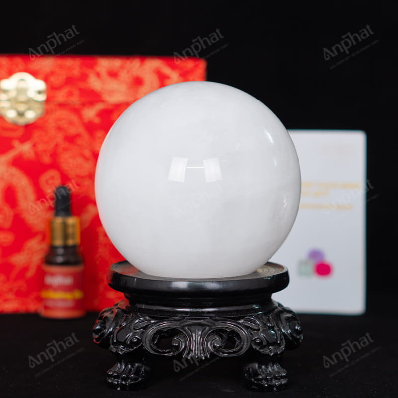 - Trọn bộ sản phẩm bao gồm: quả cầu + 01 đế gỗ + hộp nhung cao cấp + túi giấy sang trọng + dầu dưỡng đá + thiệp + giấy kiểm định chất lượng đá