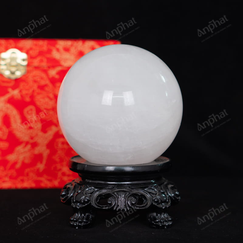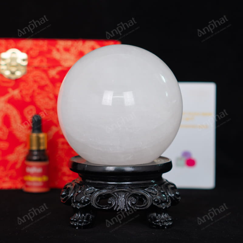- Trọn bộ sản phẩm bao gồm: quả cầu + 01 đế gỗ + hộp nhung cao cấp + túi giấy sang trọng + dầu dưỡng đá + thiệp + giấy kiểm định chất lượng đá