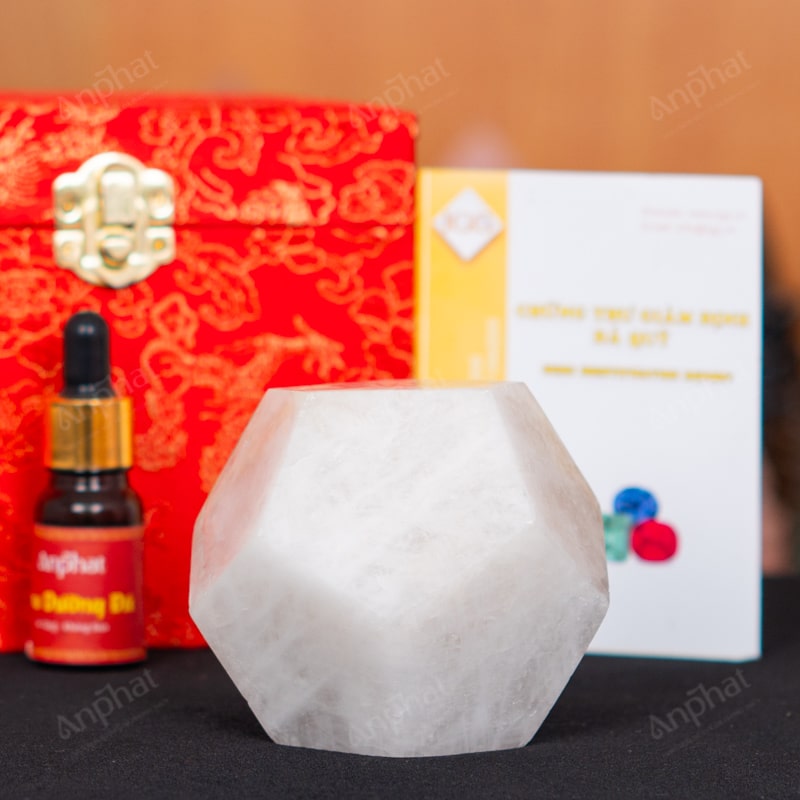 - Trọn bộ sản phẩm bao gồm: quả cầu + hộp đựng sang trọng + túi giấy sang trọng + dầu dưỡng đá + thiệp tặng quà + giấy kiểm định chất lượng đá