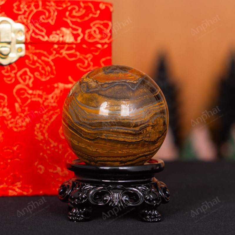 Quả Cầu Đá Mắt Hổ Vàng Nâu 3A 0,42kg 011-0413A-0,42