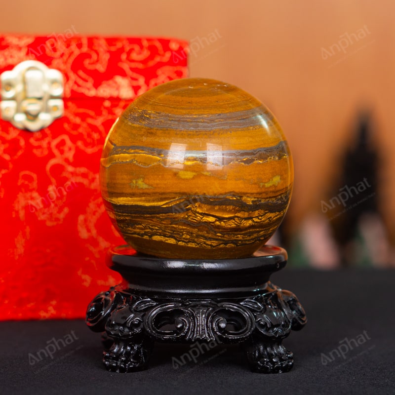 Quả Cầu Đá Mắt Hổ Vàng Nâu 3A 0,71kg 011-0413A-0,71