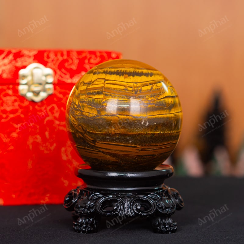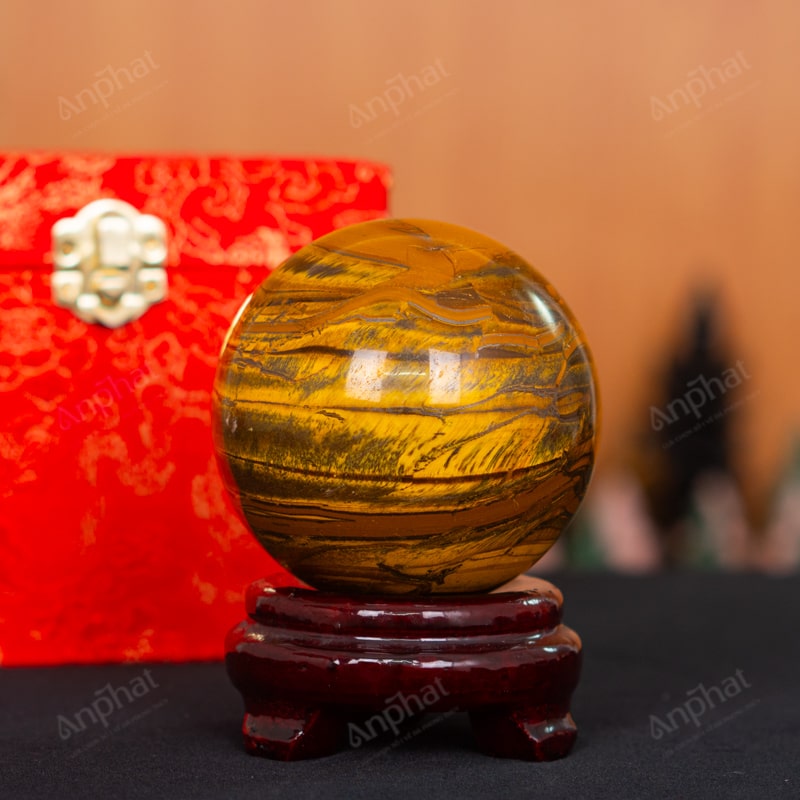 Quả Cầu Đá Mắt Hổ Vàng Nâu 3A 0,9kg 011-0413A-0,9