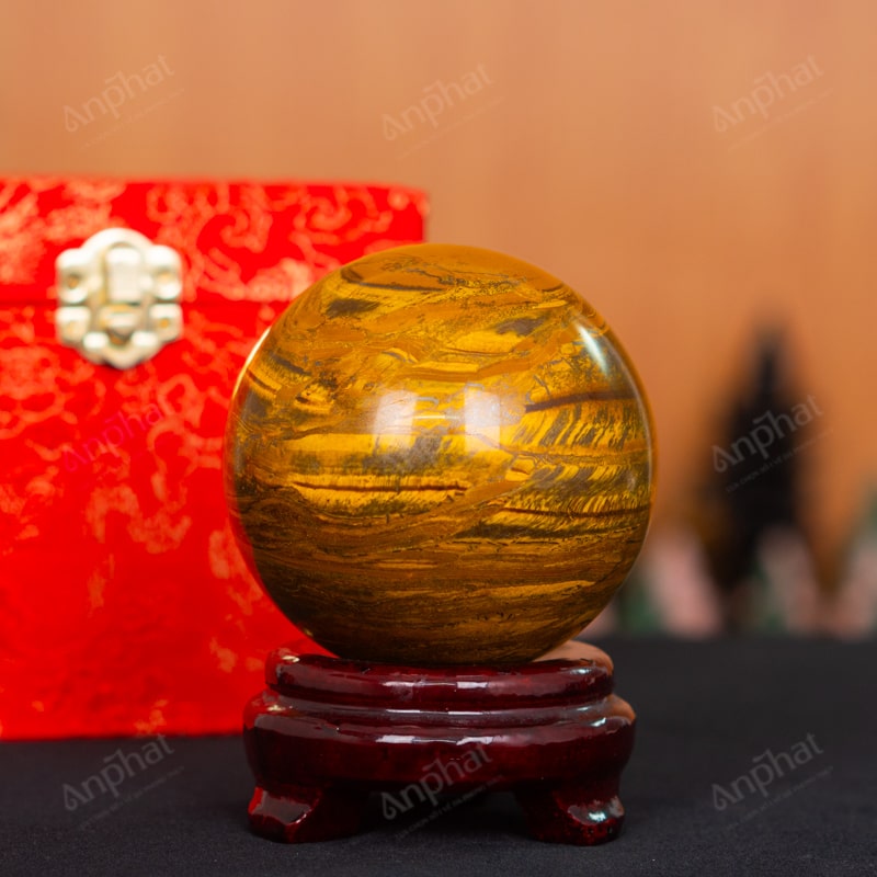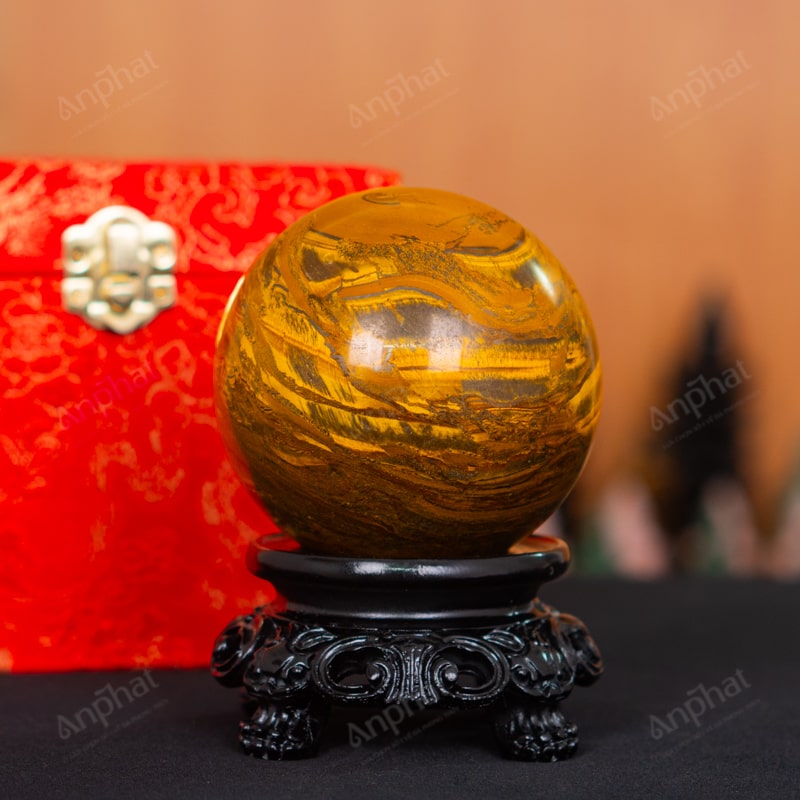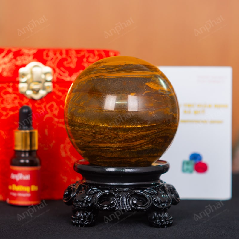 Quả Cầu Đá Mắt Hổ Vàng Nâu 3A 0,92kg 011-0413A-0,92