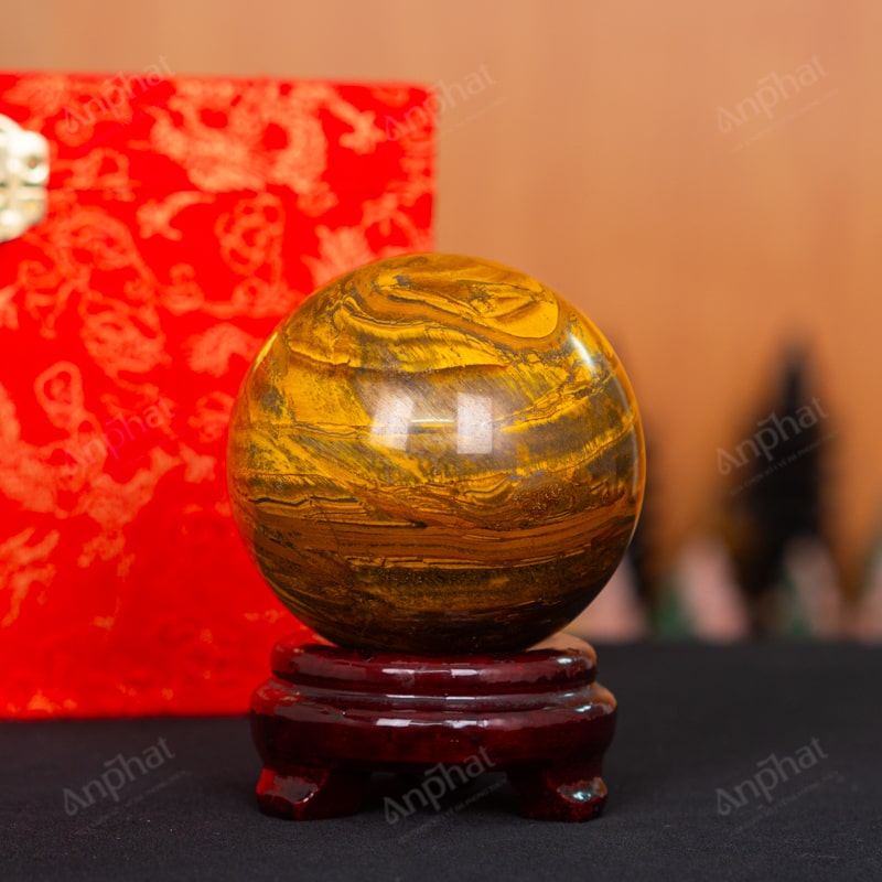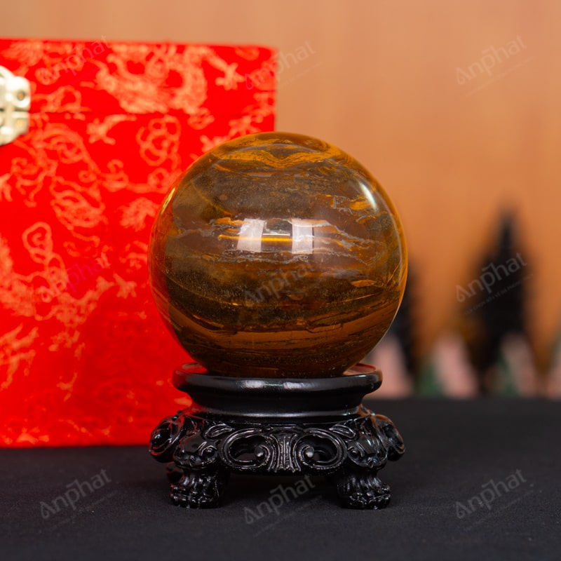 Quả Cầu Đá Mắt Hổ Vàng Nâu 3A 0,99kg 011-0413A-0,99