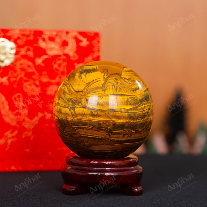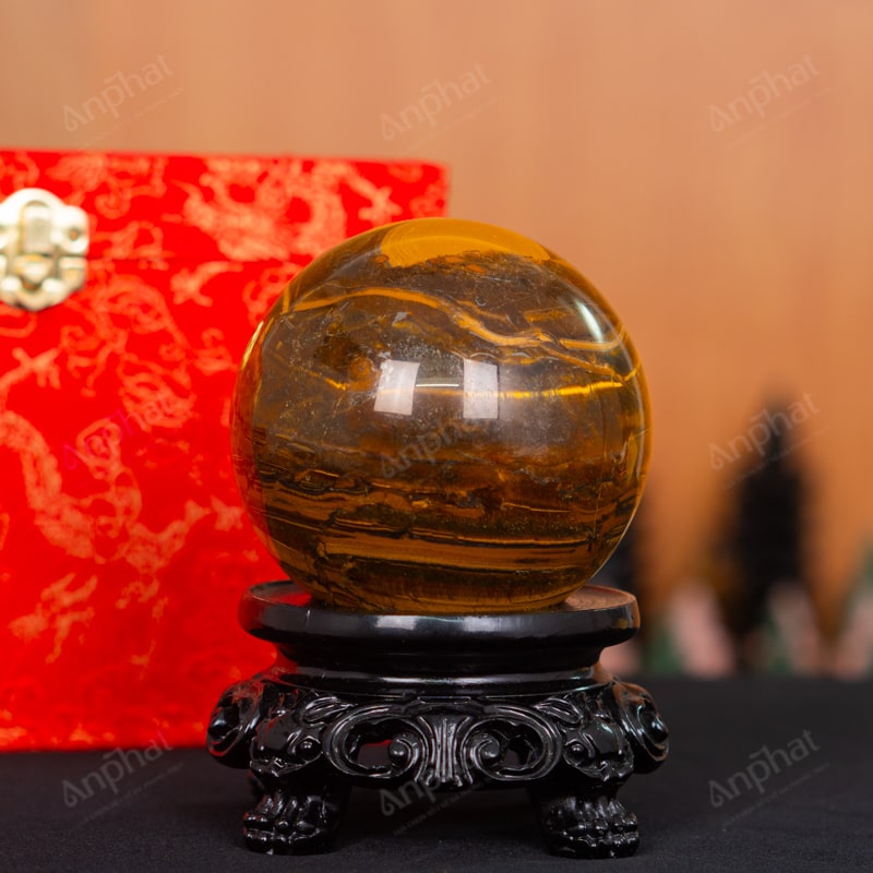 Quả Cầu Đá Mắt Hổ Vàng Nâu 3A 1,3kg 011-0413A-1,3