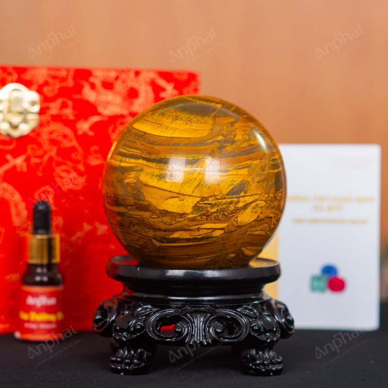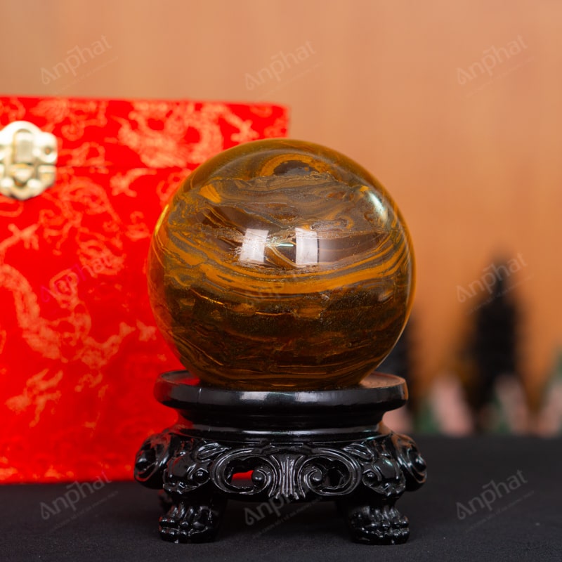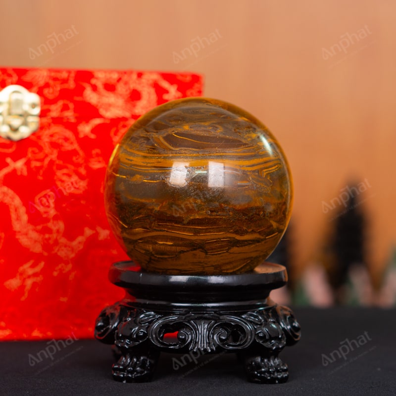 Quả Cầu Đá Mắt Hổ Vàng Nâu 3A 1,35kg 011-0413A-1,35