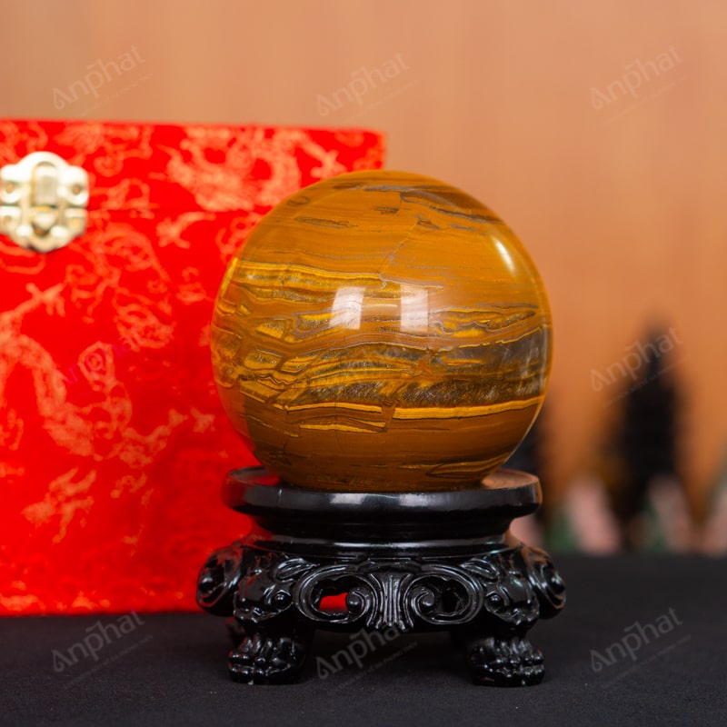 Quả Cầu Đá Mắt Hổ Vàng Nâu 3A 1,41kg 011-0413A-1,41