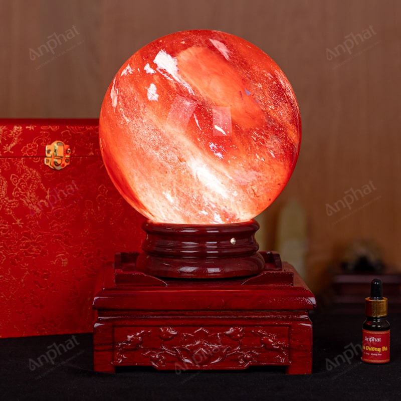 - Trọn bộ sản phẩm bao gồm: quả cầu + 01 đế + hộp nhung cao cấp + túi giấy sang trọng + dầu dưỡng đá + thiệp tặng quà + trì chú tại chùa