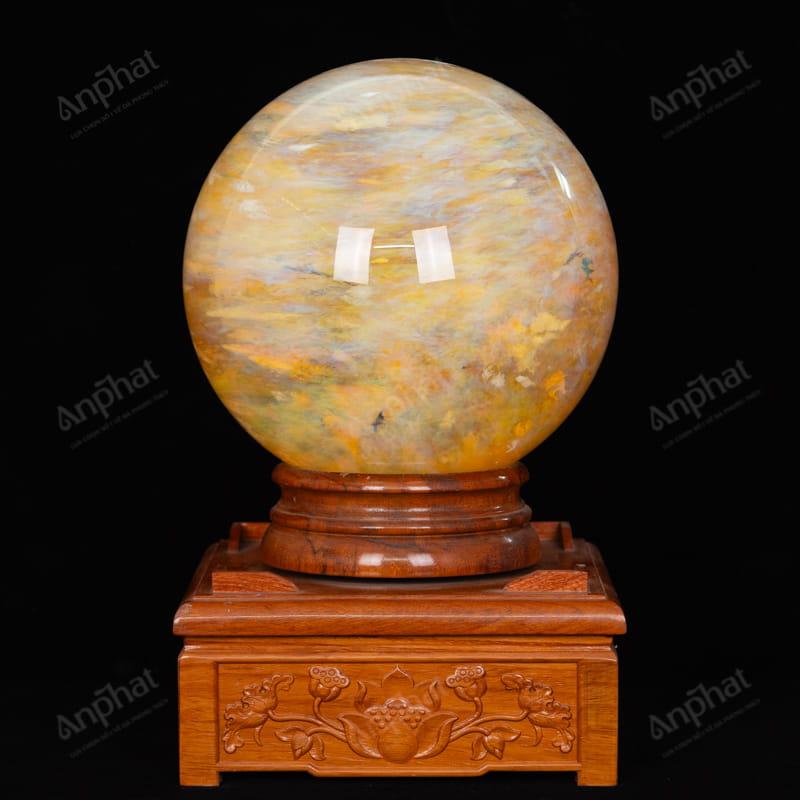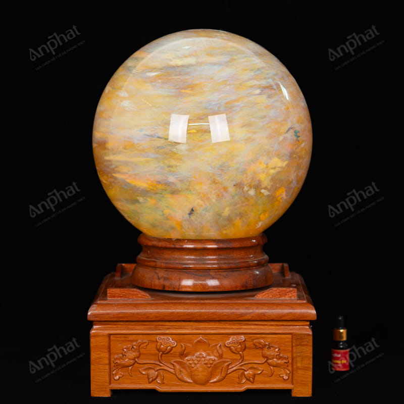 - Trọn bộ sản phẩm bao gồm: quả cầu + 01 đế gỗ + dầu dưỡng đá + thiệp tặng quà