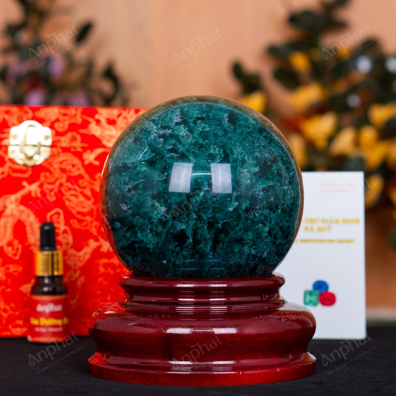 - Trọn bộ sản phẩm bao gồm: quả cầu + 01 đế + hộp nhung cao cấp + túi đựng sang trọng + dầu dưỡng đá + thiệp + giấy kiểm định chất lượng đá