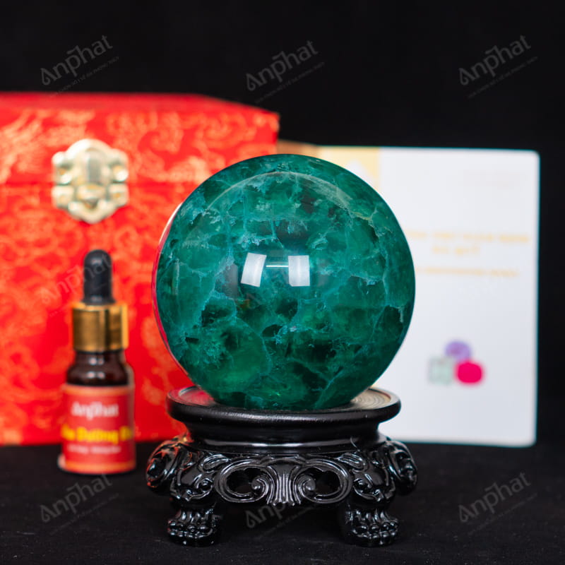 - Trọn bộ sản phẩm bao gồm: quả cầu + 01 đế + hộp nhung cao cấp + túi đựng sang trọng + dầu dưỡng đá + thiệp + giấy kiểm định chất lượng đá