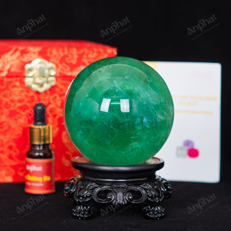 - Trọn bộ sản phẩm bao gồm: quả cầu + 01 đế + hộp nhung cao cấp + túi đựng sang trọng + dầu dưỡng đá + thiệp + giấy kiểm định chất lượng đá
