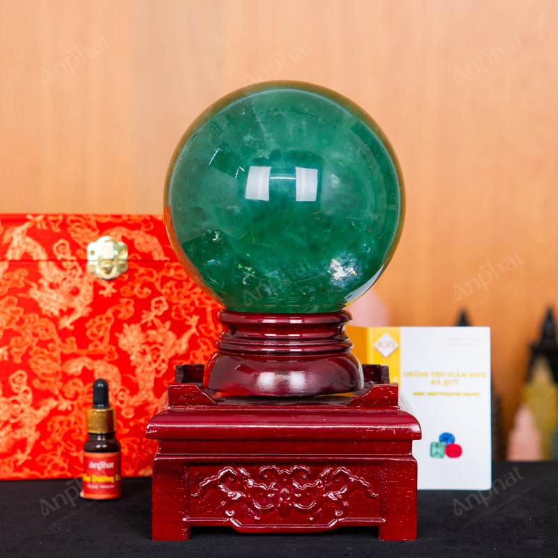 - Trọn bộ sản phẩm bao gồm: quả cầu + 01 đế + hộp nhung cao cấp + túi đựng sang trọng + dầu dưỡng đá + thiệp + giấy kiểm định chất lượng đá