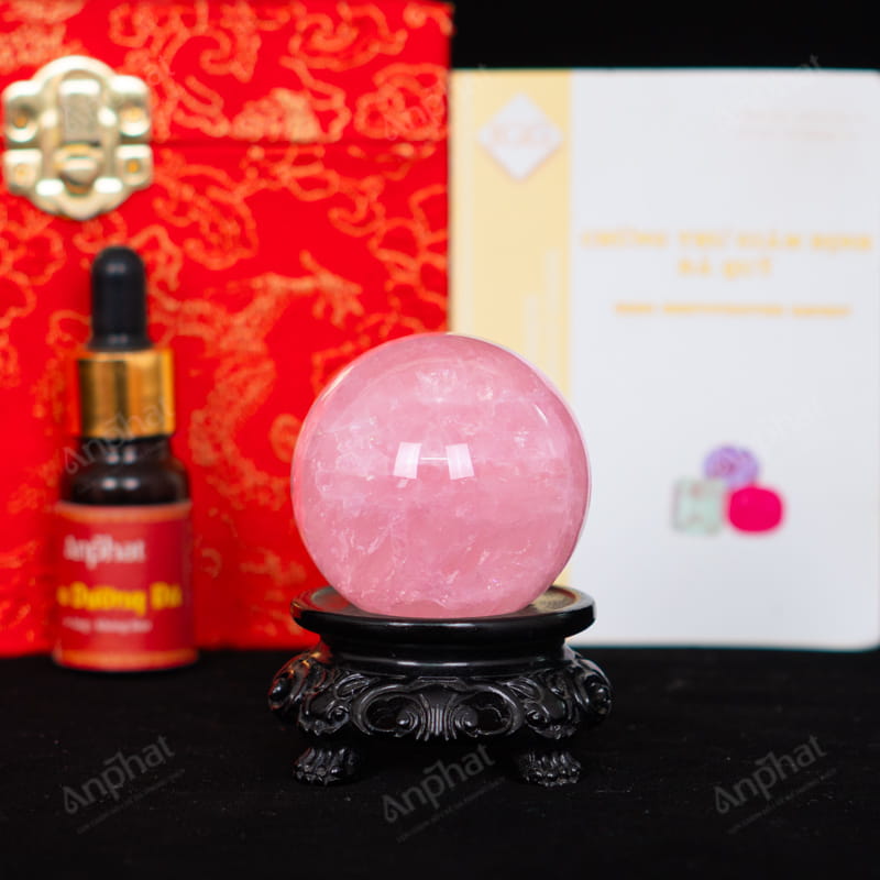 Quả Cầu Thạch Anh Hồng 9A Có Sao 0,18kg 012-0769A-0,18