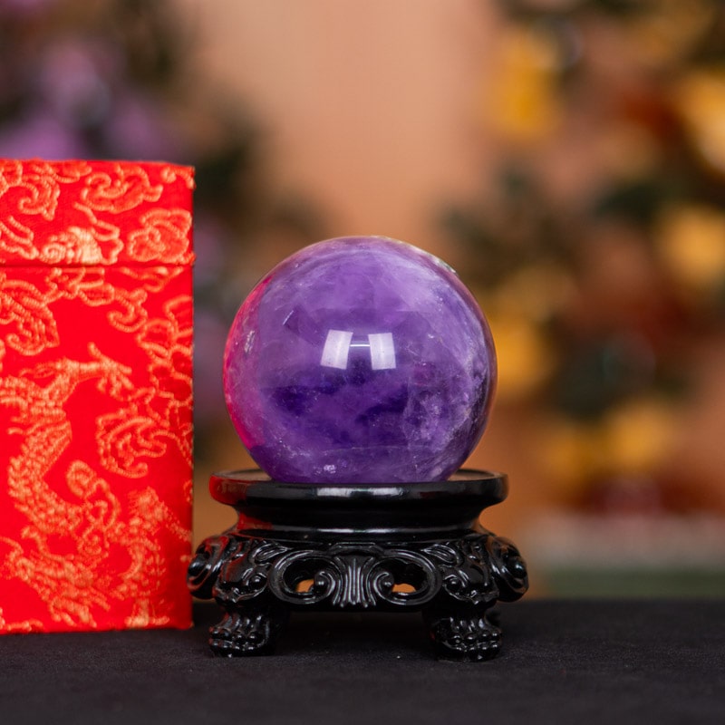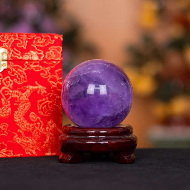 - Trọn bộ sản phẩm bao gồm: quả cầu + 01 đế + hộp nhung cao cấp + túi giấy sang trọng + dầu dưỡng đá + thiệp tặng quà + giấy kiểm định chất lượng đá + trì chú tại chùa