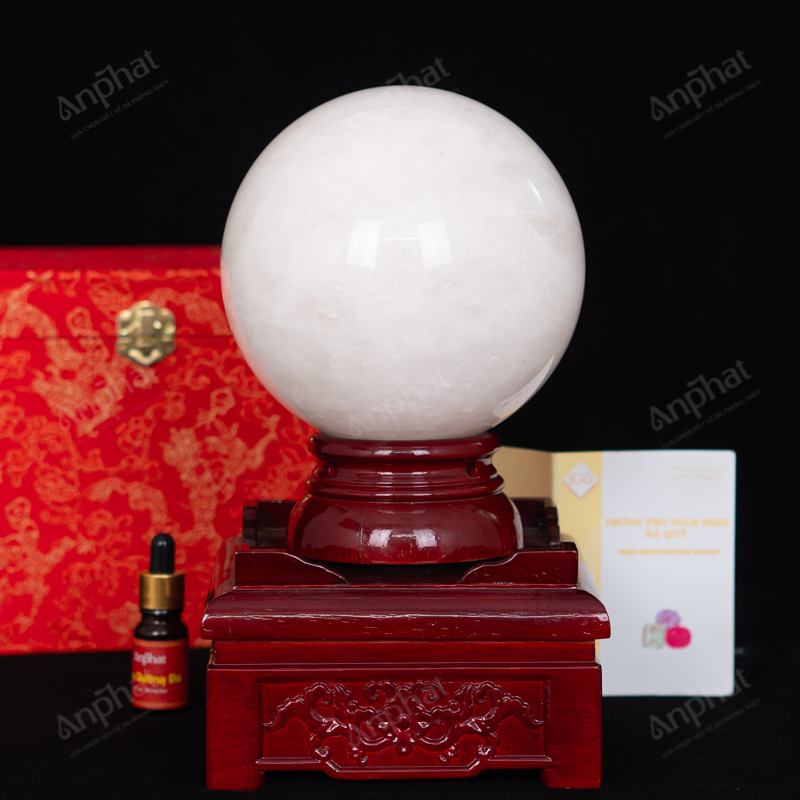 - Trọn bộ sản phẩm bao gồm: quả cầu + 01 đế + hộp đựng sang trọng + túi giấy sang trọng + dầu dưỡng đá + thiệp + giấy kiểm định chất lượng đá