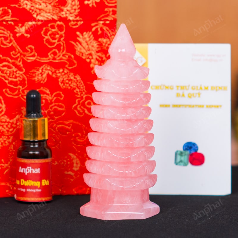- Trọn bộ sản phẩm bao gồm: Tháp văn xương + hộp nhung cao cấp + túi giấy sang trọng + dầu dưỡng đá + thiệp tặng quà + giấy kiểm định chất lượng đá