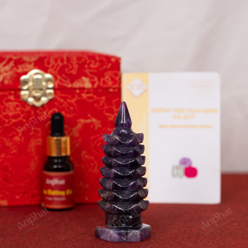 - Trọn bộ sản phẩm bao gồm: Tháp văn xương + hộp nhung cao cấp + túi giấy sang trọng + dầu dưỡng đá + thiệp tặng quà + giấy kiểm định chất lượng đá