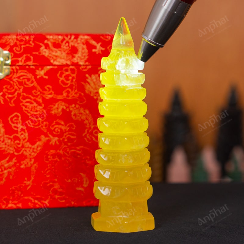 - Trọn bộ sản phẩm bao gồm: Tháp văn xương + hộp nhung cao cấp + túi giấy sang trọng + dầu dưỡng đá + thiệp tặng quà + giấy kiểm định chất lượng đá
