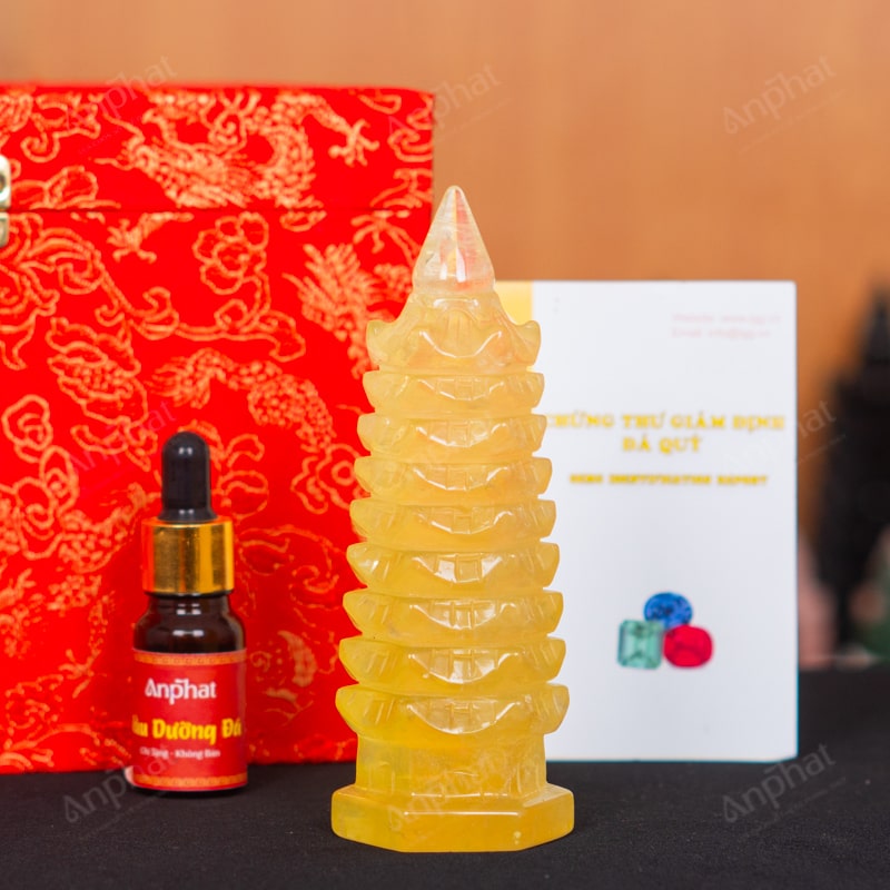- Trọn bộ sản phẩm bao gồm: Tháp văn xương + hộp nhung cao cấp + túi giấy sang trọng + dầu dưỡng đá + thiệp tặng quà + giấy kiểm định chất lượng đá