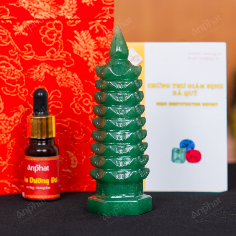 - Trọn bộ sản phẩm bao gồm: Tháp văn xương + hộp nhung cao cấp + túi giấy sang trọng + dầu dưỡng đá + thiệp tặng quà + giấy kiểm định chất lượng đá
