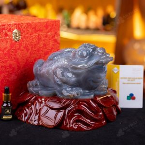 - Trọn bộ sản phẩm bao gồm: thiềm thừ + đế gỗ + hộp đựng sang trọng + túi giấy sang trọng + dầu dưỡng đá + thiệp + giấy kiểm định chất lượng đá + khăn thơm bao sái + giấy hướng dẫn trực tiếp an vị + khai quang tại chùa