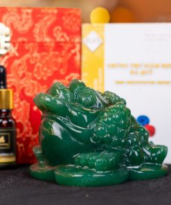- Trọn bộ sản phẩm bao gồm: thiềm thừ + hộp đựng sang trọng + túi giấy sang trọng + dầu dưỡng đá + thiệp + giấy kiểm định chất lượng đá + khăn thơm bao sái + giấy hướng dẫn trực tiếp an vị + khai quang tại chùa