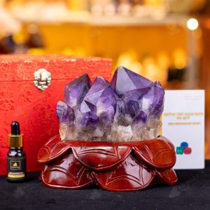 - Trọn bộ sản phẩm bao gồm: tinh thể thạch anh + đế gỗ + túi giấy sang trọng + dầu dưỡng đá + thiệp + giấy kiểm định chất lượng đá