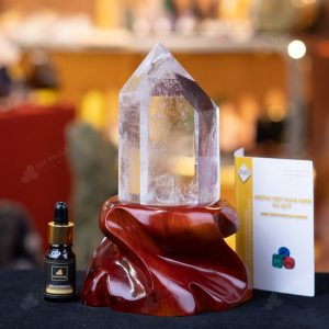 - Trọn bộ sản phẩm bao gồm: trụ thạch anh + đế gỗ + dầu dưỡng đá + thiệp + giấy kiểm định chất lượng đá