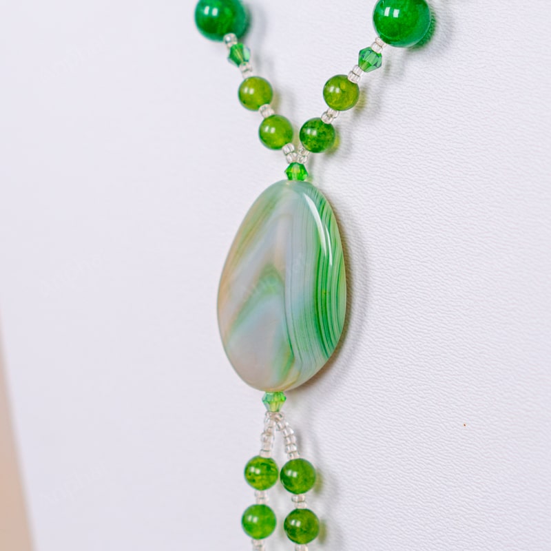 Vòng Cổ Mã Não Xanh Lá 1A 138-0281A-AP