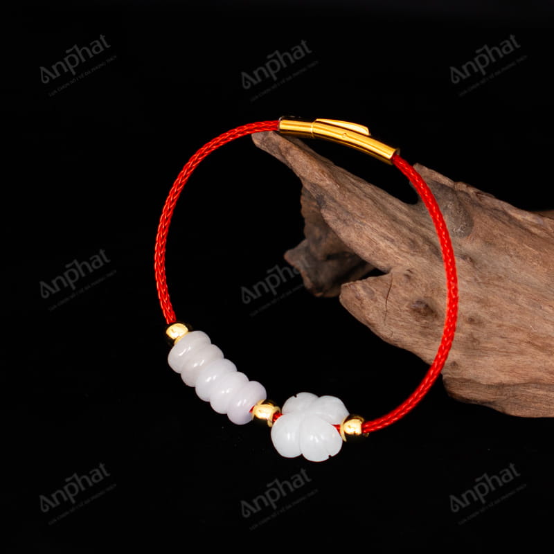 Vòng Tay Dây Cáp Đồng Điếu Bạch Ngọc Cỏ 4 Lá 113-118C17-AP