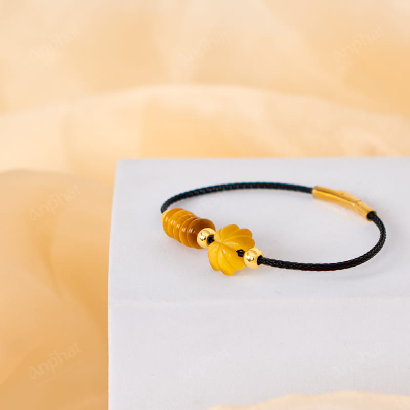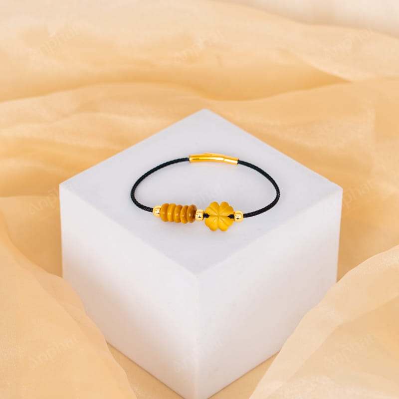 Vòng Tay Dây Cáp Đồng Điếu Mắt Hổ Vàng Sáng Cỏ 4 Lá 113-042C17-AP