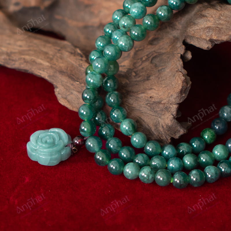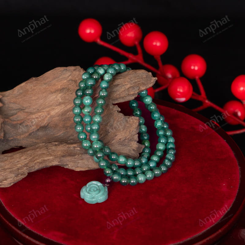Vòng Tay Ngọc Jade Xanh Mix Hoa Mẫu Đơn Cuốn 3 Vòng 6 Ly 080-050V06-6