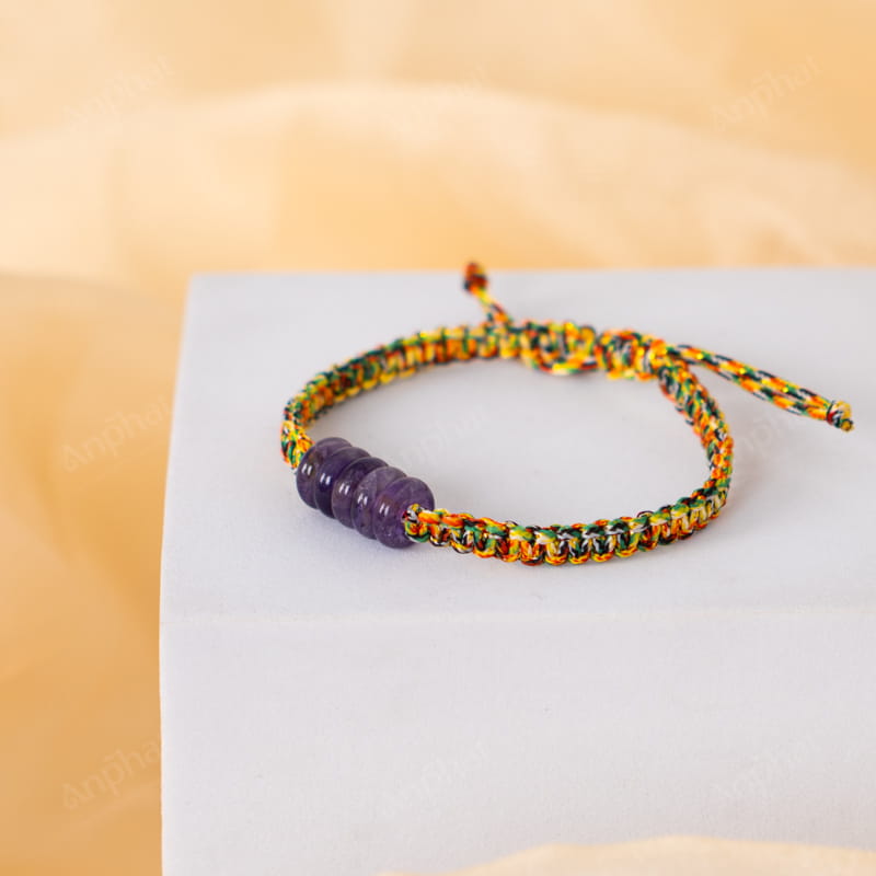 Vòng Tay Ngũ Sắc Đồng Điếu Thạch Anh Tím 1A 120-0791A-AP