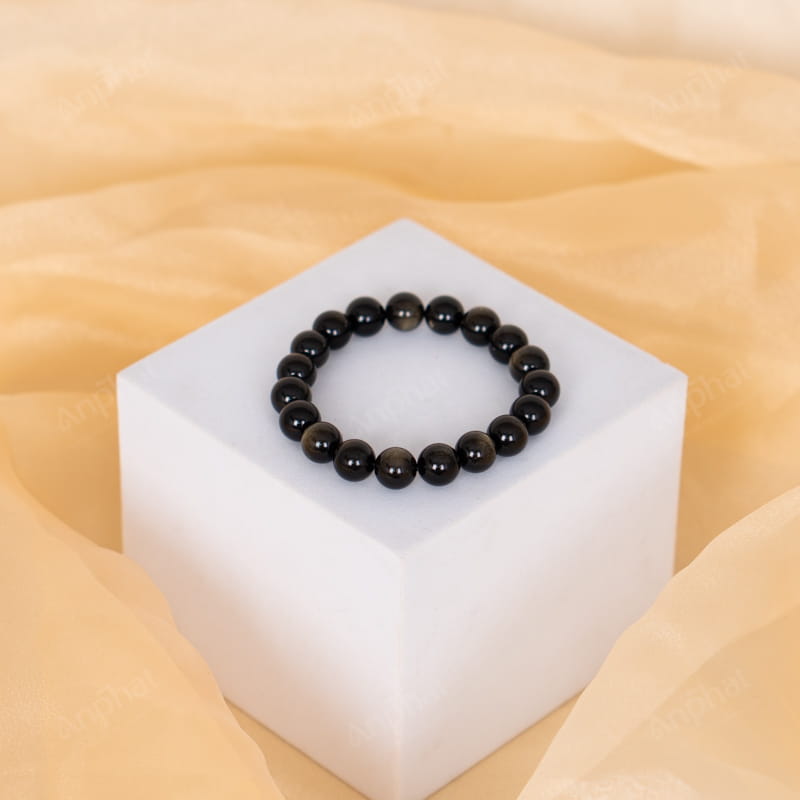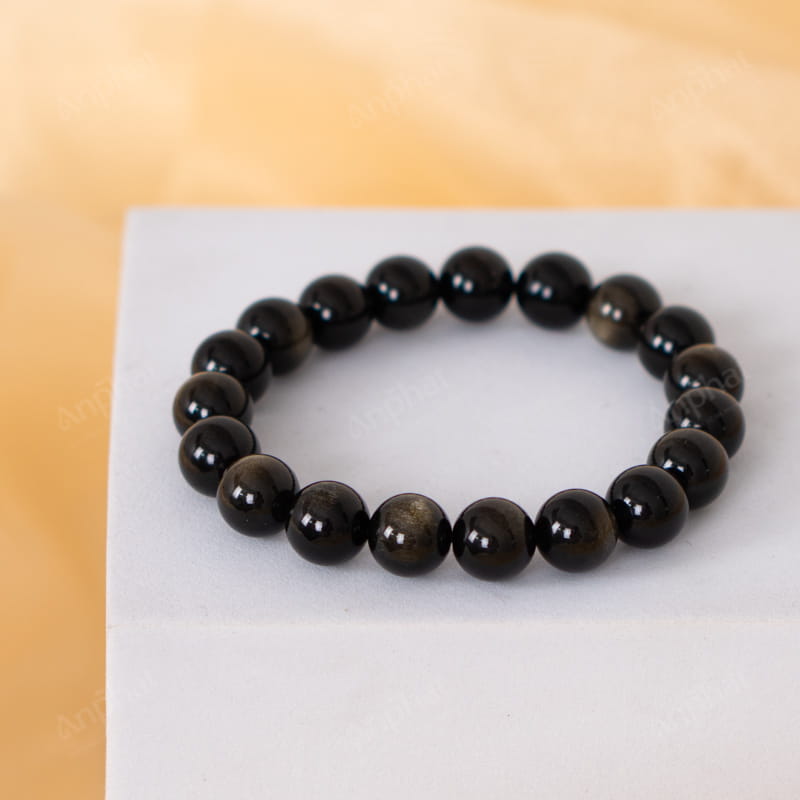 Vòng Tay Obsidian Đen Ánh Vàng 7A 10 Ly 079-1567A-10