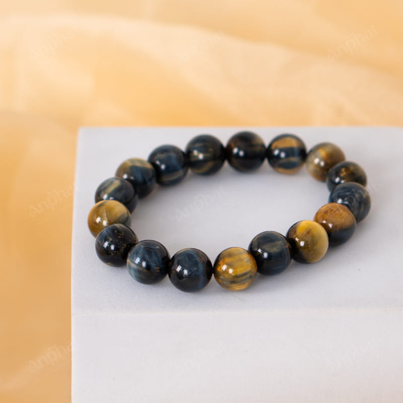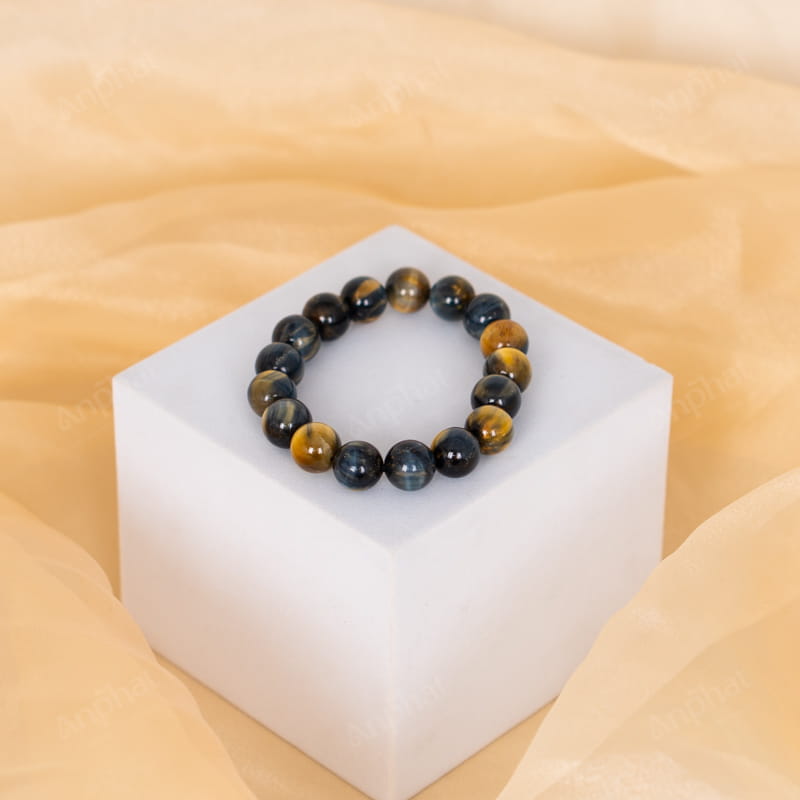 Vòng Tay Thạch Anh Mắt Hổ Xanh Vàng 5A 12 Ly 079-1575A-12